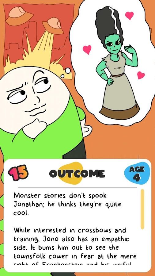 Infinite Jonathans Meet Jonathan, from that day his life completely in your hands. And only you can decide how it will proceed.Along with millions of admirers around the world, you will vote to decide what will be the next act of Jonathan.You will be with him starting from infancy and ending with his death, only you can determine when this moment will come.What will be your Jonathan, delicate, romantic soul or treacherous villain? Ridiculous elections can amuse you and your friends to play will become more interesting. Make decisions wisely because you are stuck though virtual, but still life.