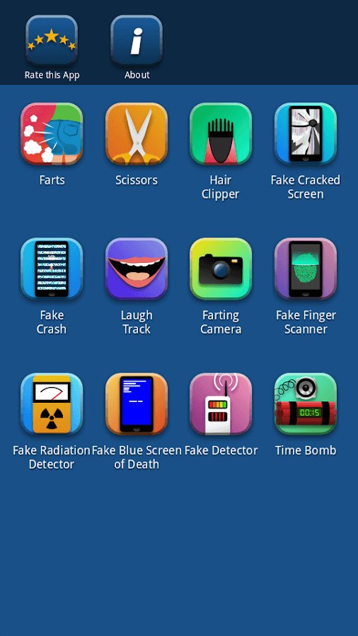 Prank Pack - become the best prikolisti, trolte friends and make fun prank. Play all around using this extraordinary app, you will find well-known not only fun, but also brand new original pranks. Prepare by April 1, a lot of interesting pranks to your friends or relatives, or play all for no reason, and just for fun. Here you will find a lot of different jokes such as farts, scissors, cracked screen, time bomb, etc. you don t have to miss a minute!