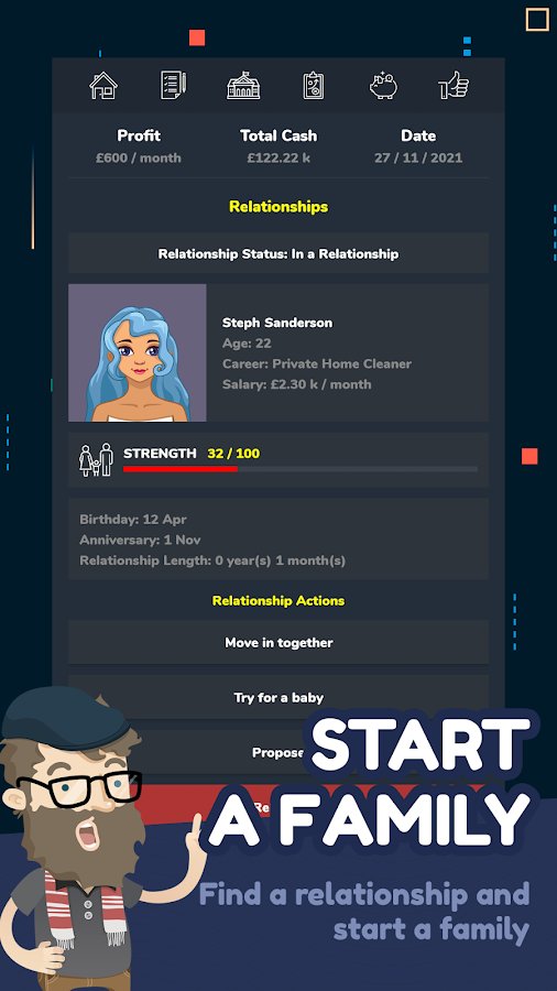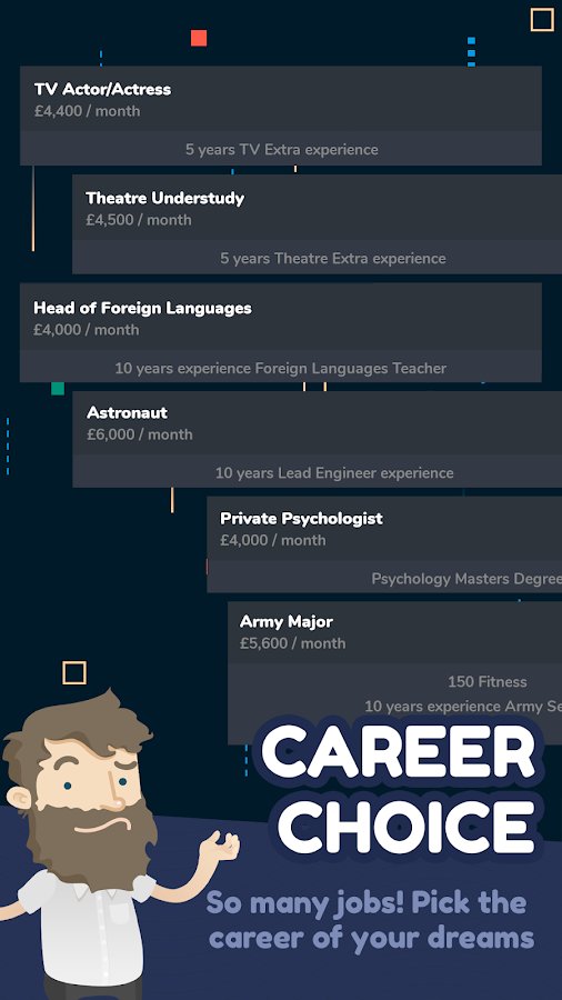 Life Simulator 3 is not just a game it s your second life, you can choose from 130 different jobs, from paleontology to instructor in martial arts.Life Simulator 3 you all! You can choose any of a hundred of his ways of teaching that will help you to find a better job. You can become a chemist or nuclear physicist to study marine biology, and it is possible even to study wildlife conservation. In this game you need to socialize, you need to communicate with friends in order to move together. Buy property cars, planes, boats, houses, etc. Live expensive live a good life, buy gifts for your partner. Get involved, get married or get married!