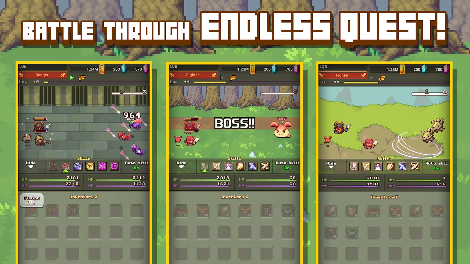 Create a clan of heroes, earn loot, to guide them through various quests and mazes. To level up characters and collect more of them, level up, completing dungeons, and collect powerful additional improvements. Let s see if your hero survive in a Linear Quest Battle: Idle Hero. These dungeons will have to upset his enormous quests. You have to fight with the monsters, improve the equipment of your characters and learn additional skills. Form teams of heroes to progress deeper and deeper into the dangerous dungeons that are filled with loot. Crawl through dungeons and go through the toughest dungeons.
