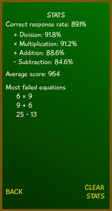 with Calc Fast you will be able to practice solving equations and examples for a certain period of time - 1 minute. The more equations you can solve, the higher the chances of success and victory. Hone the skills of addition, subtraction, multiplication and division and improve your level in the table of records. Even if you are a beginner and not good at math, then this app will help you to develop and learn much better. If some equation is solved incorrectly, the system will point out your faults.