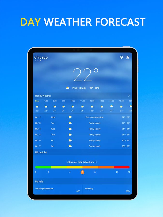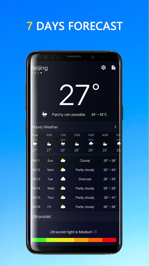 Weather Forecast Pro - for once in my life, but we are all faced with the problem: not Dressed for this weather . No longer need to suffer! App Weather Forecast Pro will give an absolutely accurate weather forecast for the coming week. It reflects the hourly information about temperature, UV index, possible precipitation, humidity, visibility, atmospheric pressure and many other factors that influence not only the choice of clothing, but also on human health. Select the city manually or automatically, and if You move frequently – make a personal list of up to 10 cities, get notified about temperature changes, as well as find out the exact time of sunrise and sunset in Your area. Automatic data updates and notifications about temperature changes